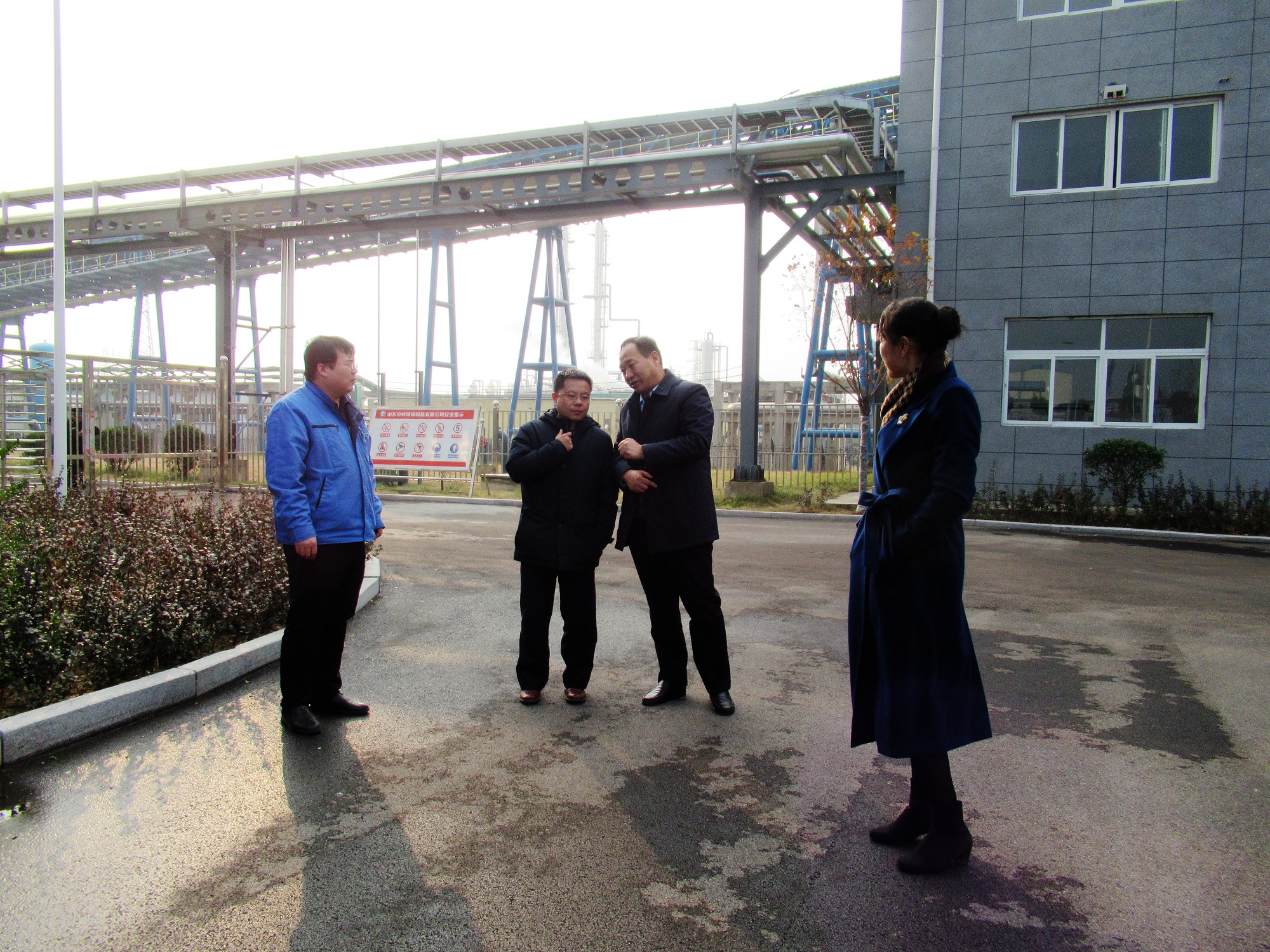 孙洪刚首先参观了维度公司,认真听取老区的情况介绍,并对老区周边状况进行了考察。随后对中科绿碳科技公司进行了参观,听取了DMF装置试验、成果鉴定、新工艺节能减排和中试平台运行等情况。
