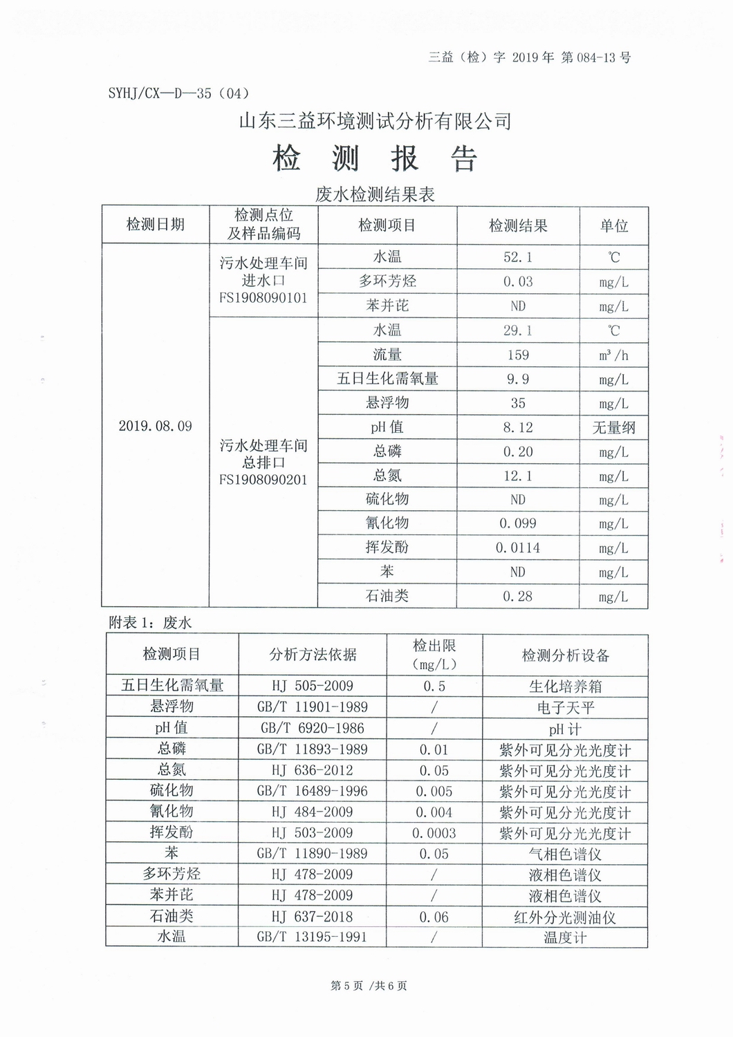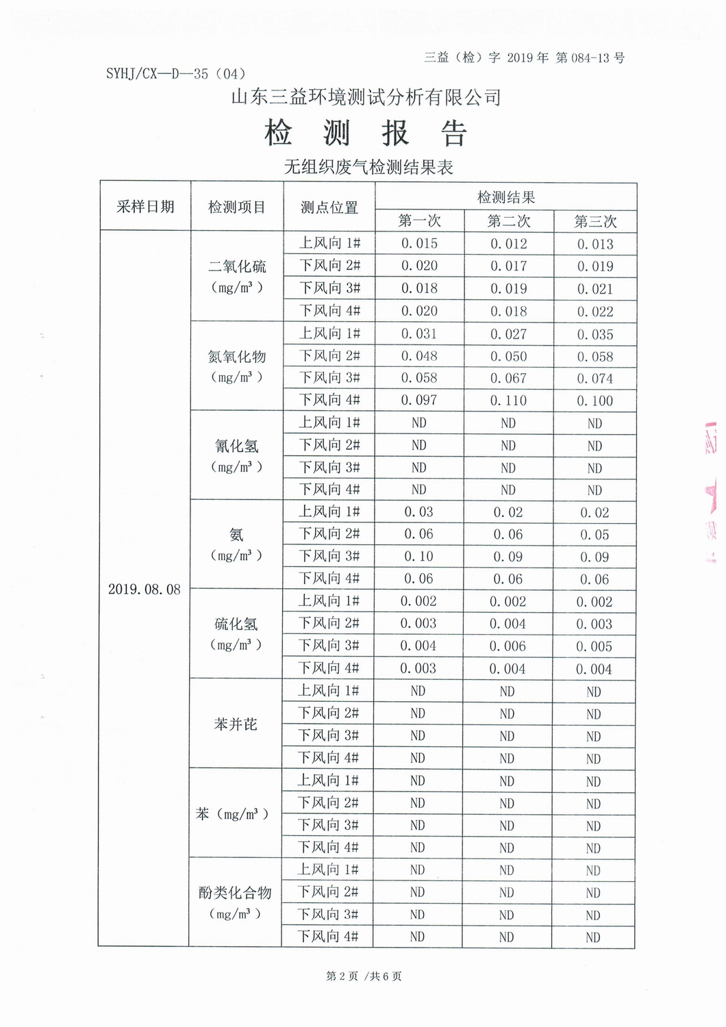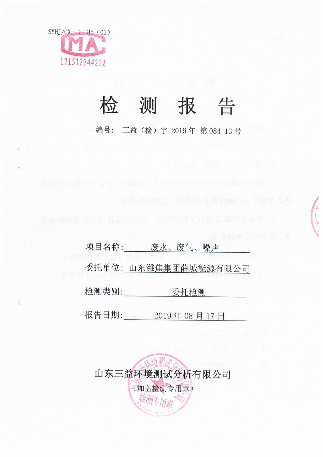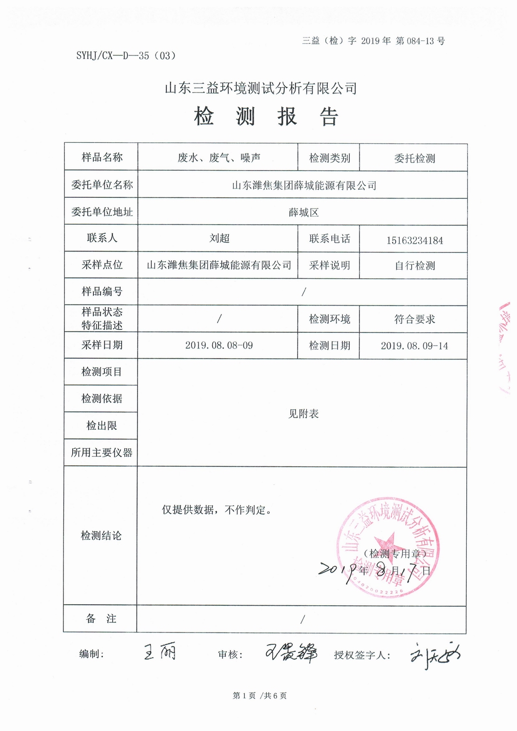 山东2007so太阳集团集团薛城能源有限公司8月份检测报告