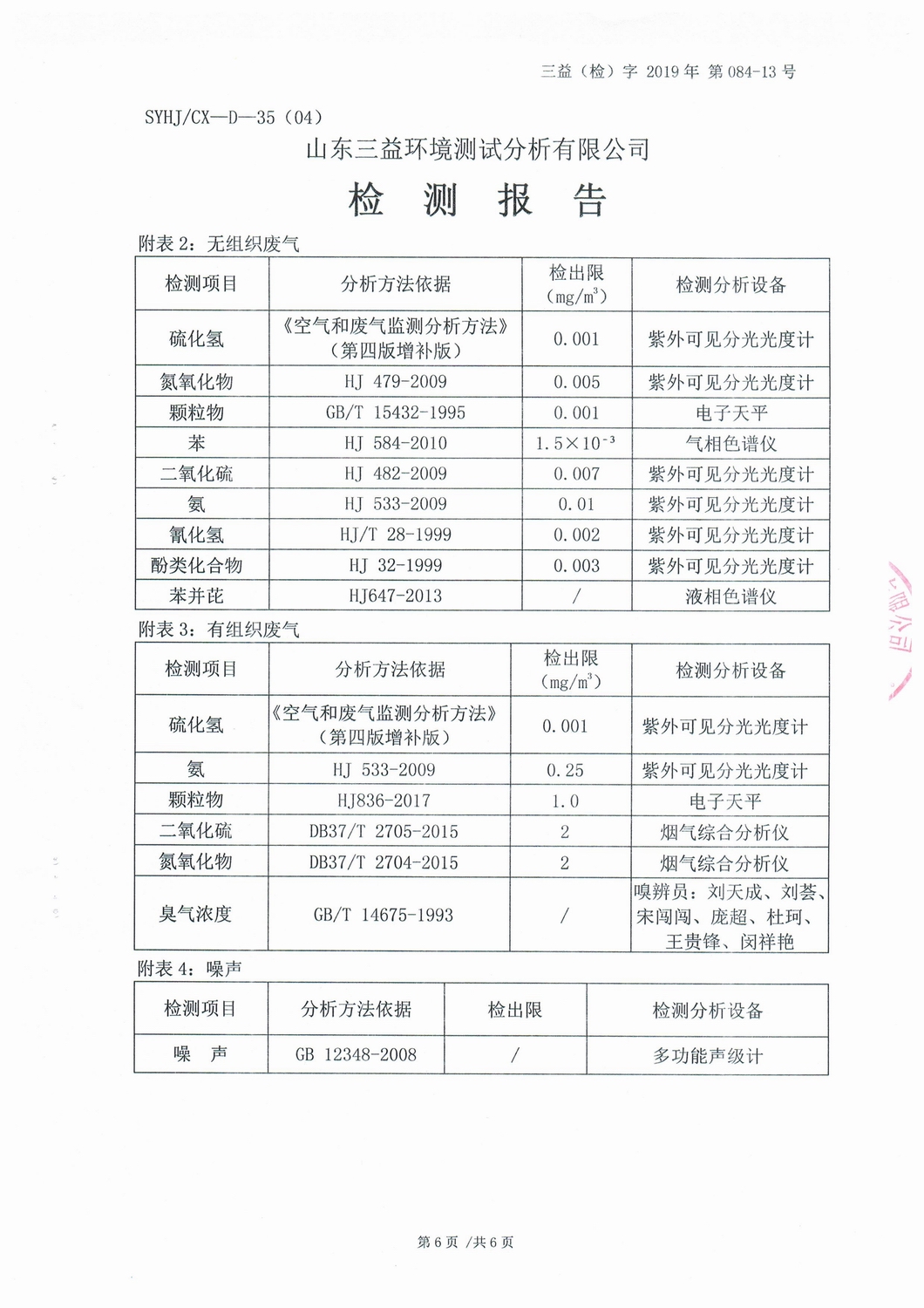 山东2007so太阳集团集团薛城能源有限公司6月份检测报告