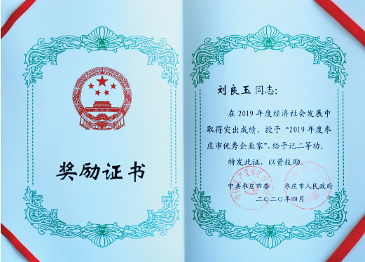 近日,枣庄市召开全市经济社会发展总结表彰暨“重点工作攻坚年”动员大会,集团公司党委书记、董事长刘良玉等10位企业家荣膺“2019年度枣庄市优 秀企业家”称号,并给予记二等功。