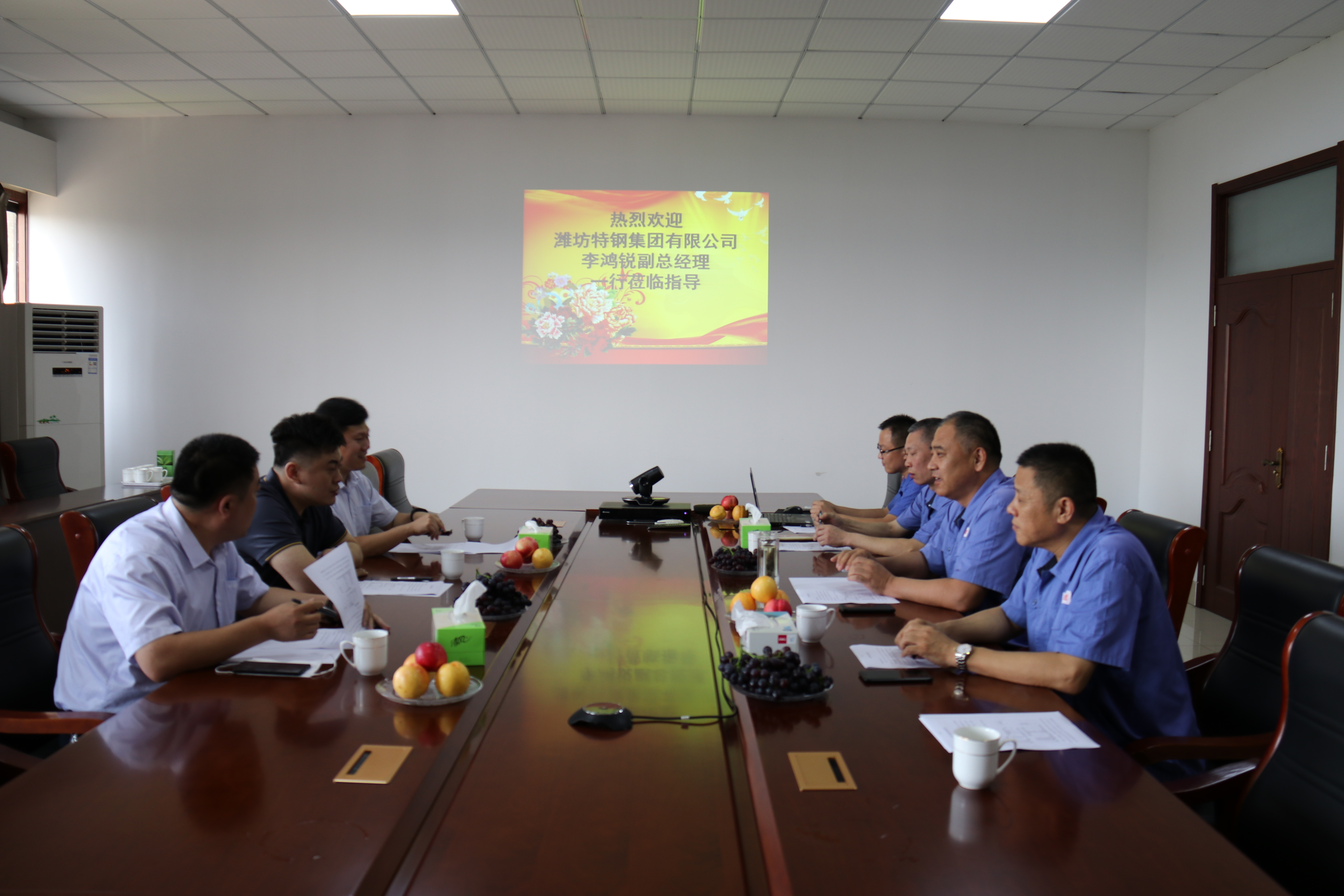 7月20日,潍坊特钢集团公司副总经理李鸿锐一行三人到振兴焦化公司调研交流,振兴焦化公司总经理杨明正、副总经理秦宏伟等领导热情接待。