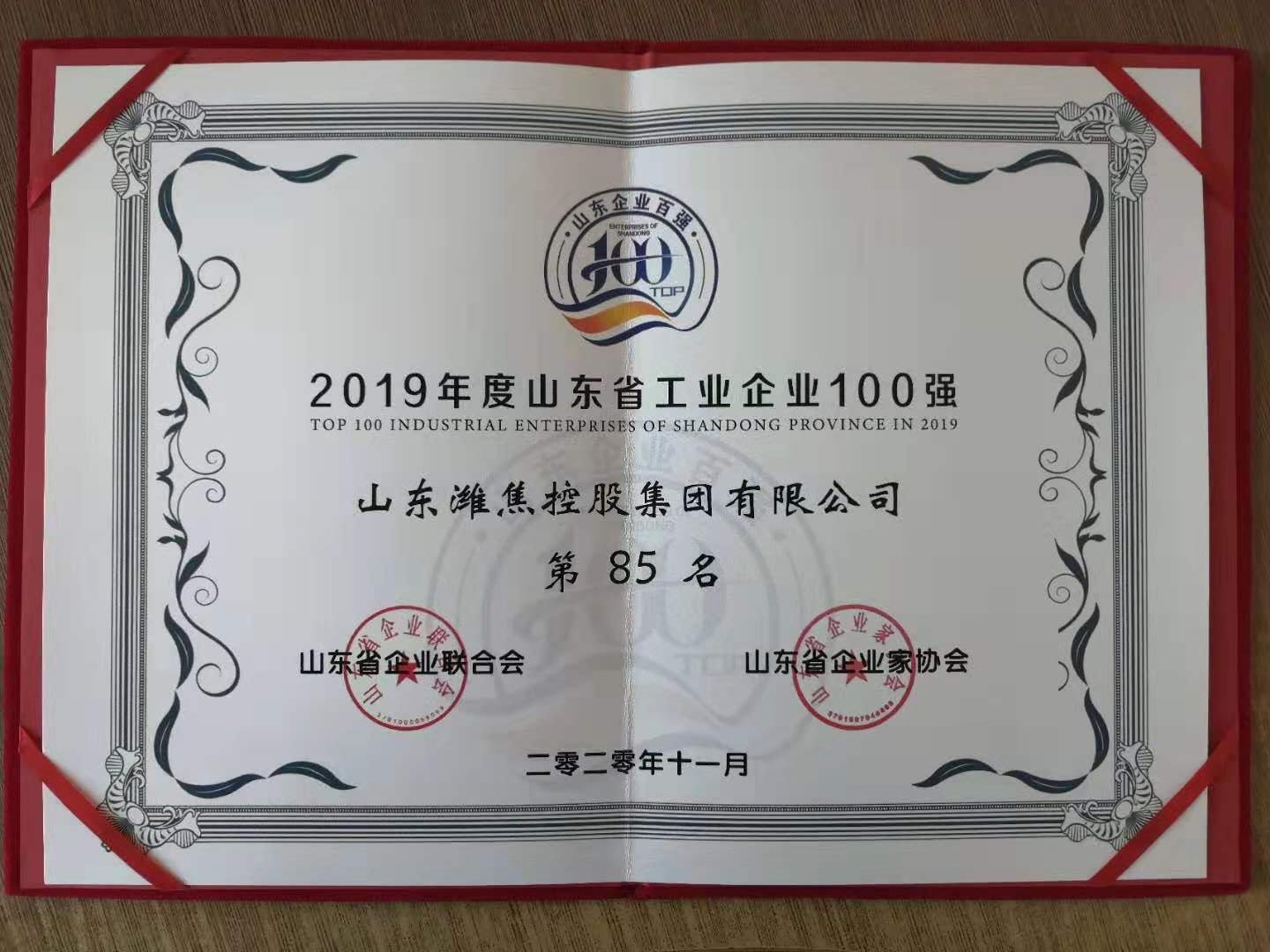 11月11日,山东省工业和信息化厅、山东省企业联合会联合发布了2019年山东省综合百强和工业百强名单,2007so太阳集团荣登山东省工业百强企业榜单,位列第85位。