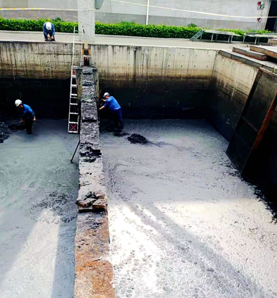 因循环水系统运行时间较长,造成循环水池内积存大量淤泥,清淤时只能一桶一桶往外清运,生产一班合理分工,两人一组,一人在池内清理另一人在池外提运,配合默契,不分你我。